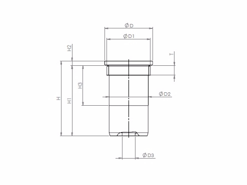 | Type no. | Order no. | øD | øD1 | øD2 | øD3 | H | H1 | H2 | H3 | T |