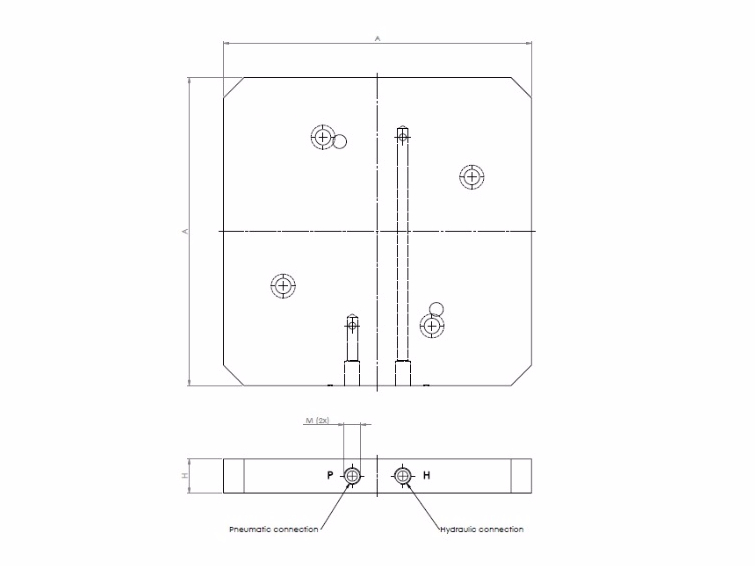 Basisplaat waar de spantang (CC150) op gemonteerd kan worden. Bouten en paspennen worden hiervoor meegeleverd. De plaat kan met spankikkers (CK150) op een machinebed worden vastgeklemd. Basisplaat is voorzien van een pneumatisch én een hydraulisch aansluitingsgat.